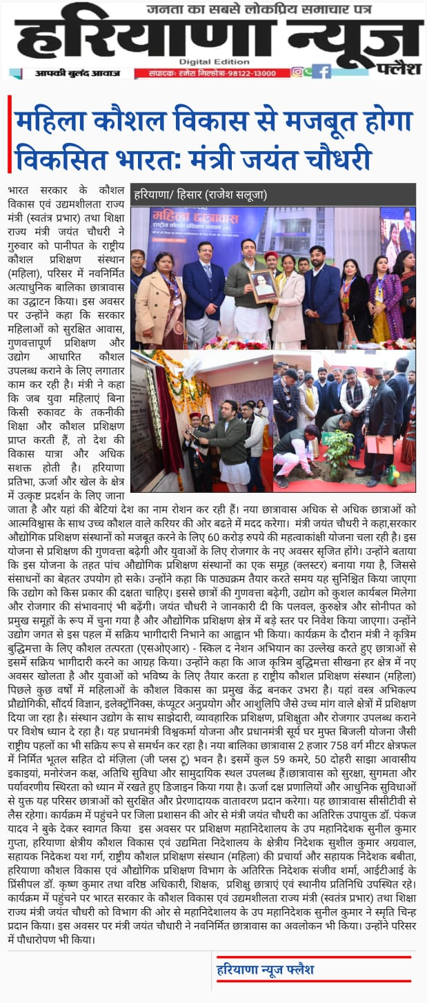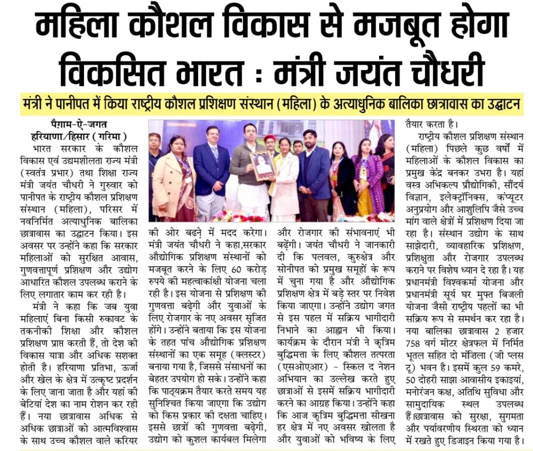 National Skill Training Institute for Women, Panipat is imparting industry oriented and need based vocational training for the women target groups. National Skill Training Institute for Women is functioning directly under the control of Central Government, Ministry of Skill Development & Entrepreneurship (Women Training) under Directorate General of Training. This is the only exclusive women vocational training institute in the state of Haryana and conducting vocational training courses i.e. Craftsmen Training Scheme (CTS), Craft Instructor Training Scheme (CITS) and Advanced Diploma in IT, Networking and Cloud course. NSTI(W) Panipat is not only directly strengthening Women skilling ecosystem of the country but also creating highly skilled Instructors for the country. The premier institute is located on main G.T. Road connecting Delhi Chandigarh and is approx. 90kms from ISBT, Delhi. The Institute is well equipped with Hi-Tech AC Labs and Experienced Technical and Administrative Staff to impart Training to Women.